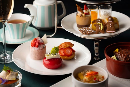 アトリウムで大人気のアフタヌーンティー。今年はクリスマス期間だけのスペシャルアフタヌーンティーをご用意します。七面鳥やいちごが主役のスイーツなど、クリスマスに華やぎを添えるアイテムを取り揃えました。普段は宿泊ゲストだけがご利用いただけるゲストラウンジで心温まる優雅なティータイムをお過ごしください。