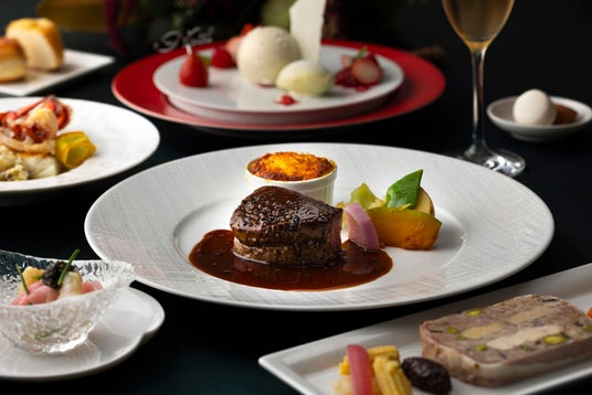 心ときめくクリスマスの夜、厳選された高級食材を贅沢に使用したスペシャルコースをご用意いたしました。三大珍味をはじめ、阿古屋貝、雉、ノドグロなど、希少な食材の個性と旨みを丁寧に引き出し、岩手県産前沢牛を主役に据えた至極のディナーをお届けします。※エトワール ド ノエル(23,000 円)、ムニュ ド ノエル レジェ(17,000円*12/24 ディナーを除く)もございます。