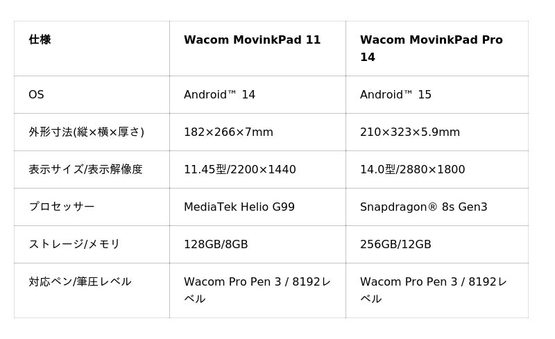 「Wacom MovinkPad 11」、「Wacom MovinkPad Pro 14」製品詳細